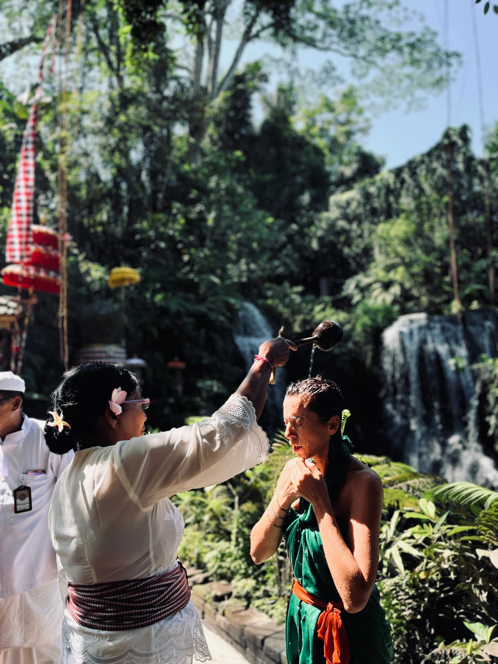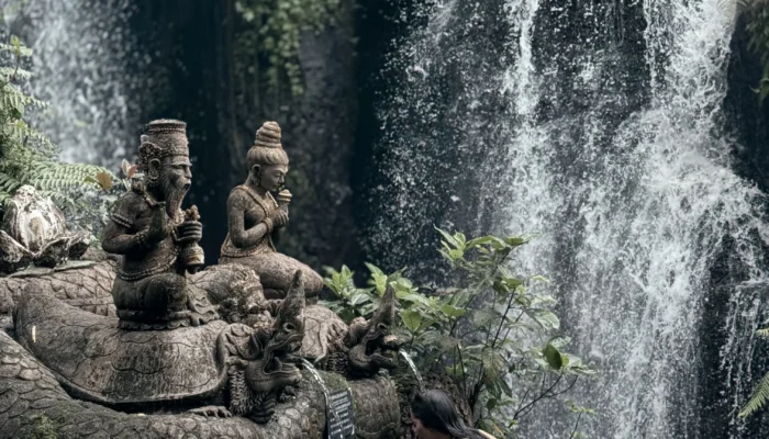 A profound self-purification ritual known as "Melukat," derived from the words "Su" (good) and "Lukat" (purification). This procession aims to cleanse the body and soul of negative energy, anxiety, nightmares, and mental burdens using holy water. At Taman Beji Griya, this ritual is unique as it involves 5 sacred stages: purification at the hidden canyon shower, natural springs, releasing emotions under the waterfall, cleansing in the pool, and concluding with young coconut water administered by the priest. This site is trusted by the Balinese community not only for inner peace but also for curing non-medical illnesses and praying for offspring.